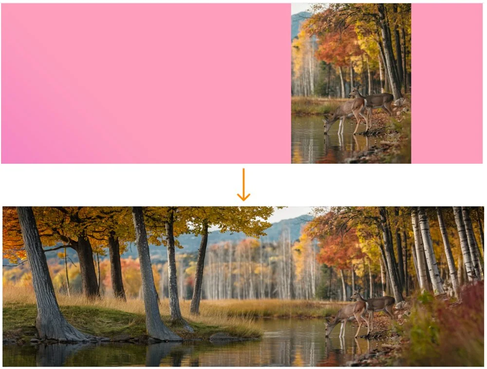Extend. Расширяет изображение за его границы, добавляет новые элементы в том же стиле. Например, вы можете из вертикальной картинки сделать горизонтальную и наоборот.