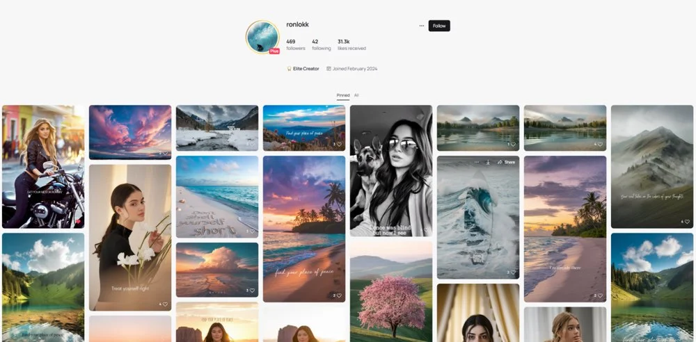 Важный момент: в бесплатном тарифе все ваши работы публичны и видны другим пользователям. Вы тоже можете зайти на страницу любого аккаунта, посмотреть его работы, лайкнуть их или подписаться на профиль. Приватные генерации доступны только в платных тарифах.