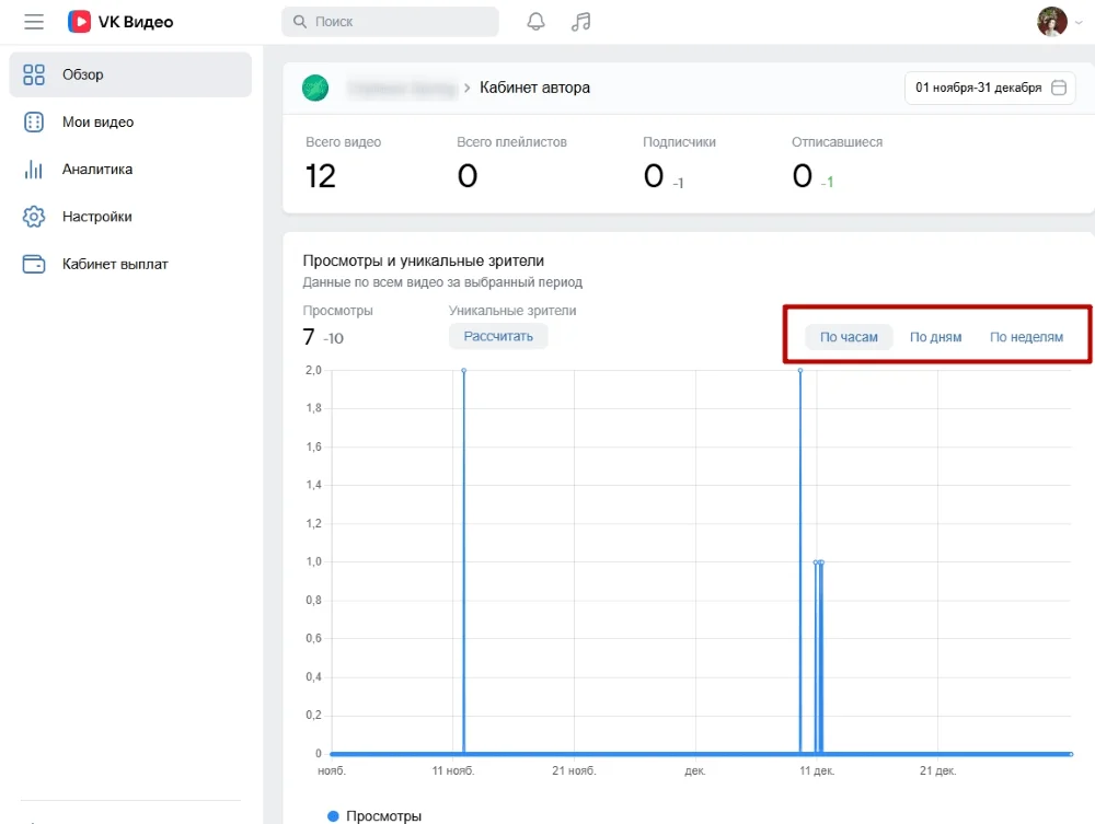 В кабинете автора можно увидеть количество уникальных зрителей, определить наиболее популярные ролики, а также проанализировать распределение аудитории по полу, возрасту, городам и странам. Для более детального анализа данные можно фильтровать по различным периодам: часам, дням, неделям.