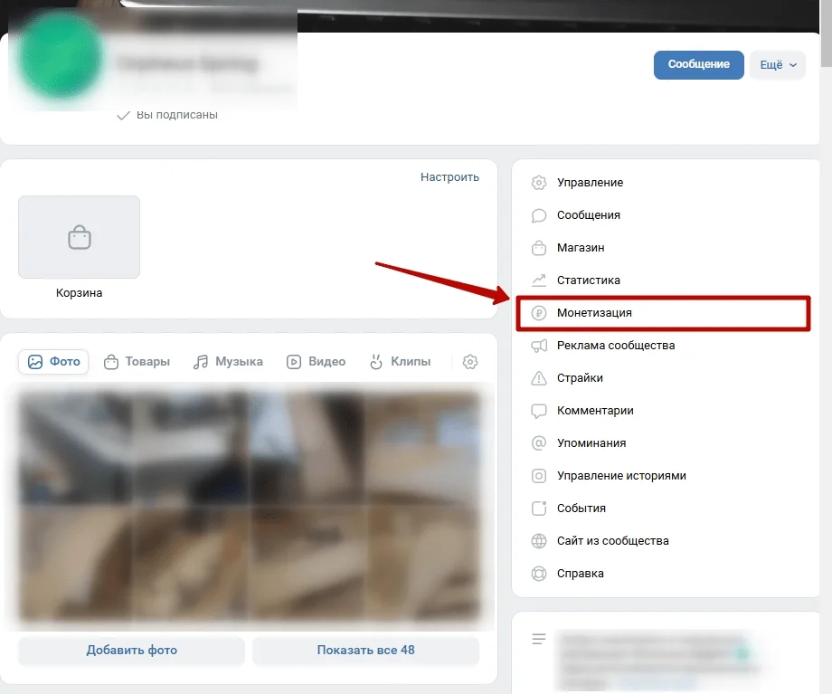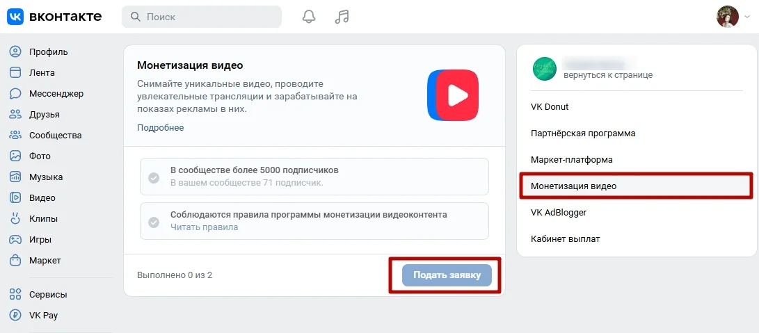 Если сообщество соответствует критериям, его можно отправить на проверку из раздела «Монетизация» в меню сообщества.