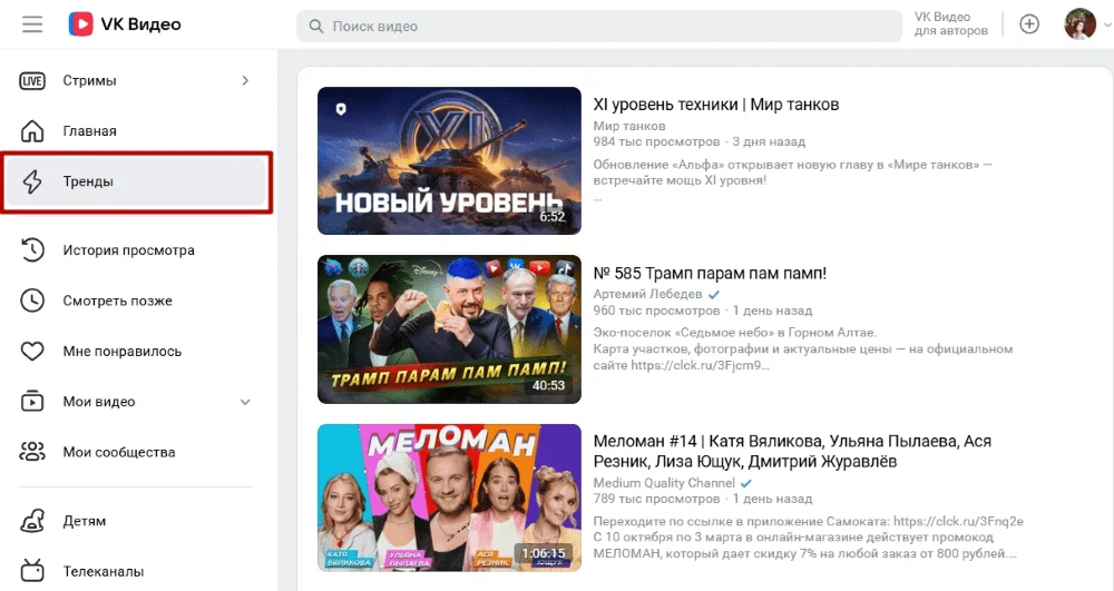 Смотреть популярные видео в разделе «Тренды». Алгоритмы VK Видео размещают здесь контент с высоким потенциалом цитируемости и обсуждаемости.