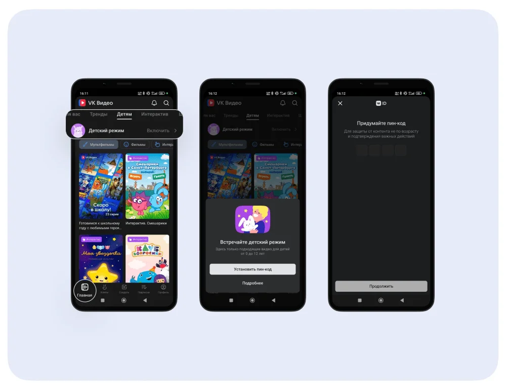 В приложении VK Видео есть детский режим — специальная подборка видеоконтента для детей от 0 до 12 лет. Детский режим доступен на мобильных устройствах с операционными системами iOS и Android, а также на телевизорах с функциями Smart TV и Android TV.