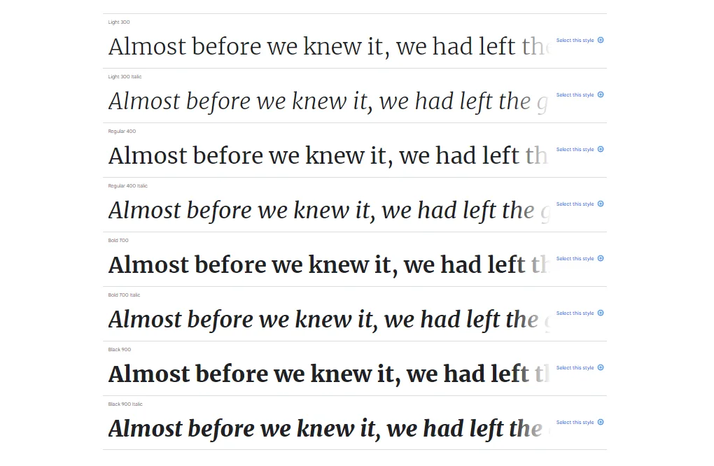 Разные начертания шрифта Merriweather на Google Fonts