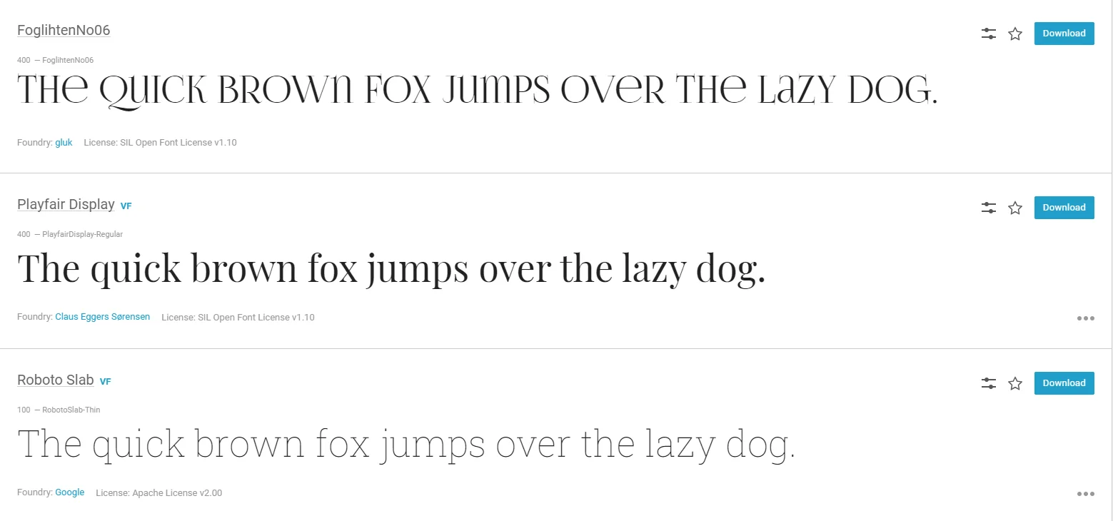 Шрифты с засечками на Fontstorage