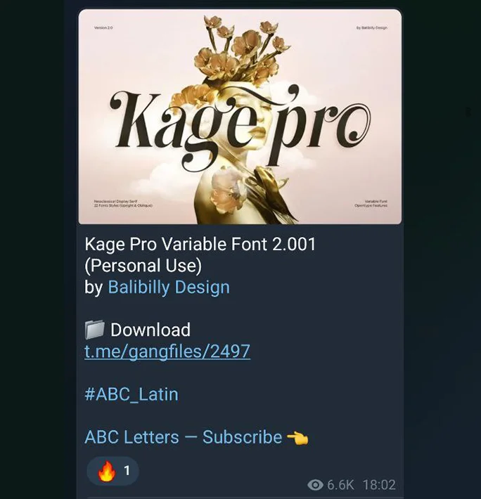 Здесь публикуют платные и бесплатные шрифты. Платных даже больше, но их можно отсеивать по тегам. На канале можно узнавать о новых шрифтах в первые дни их выпуска, публикации делают оперативно. Бесплатные шрифты начинающих дизайнеров здесь можно увидеть редко, зато есть анонсы новинок от Google Fonts и бесплатные шрифты, разработанные в рамках спецпроектов для мероприятий, городов, стран, в честь памятных исторических дат.