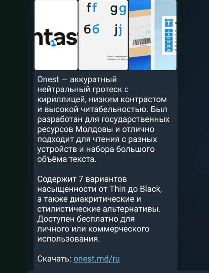 Пример публикации на канале «Новые шрифты»
