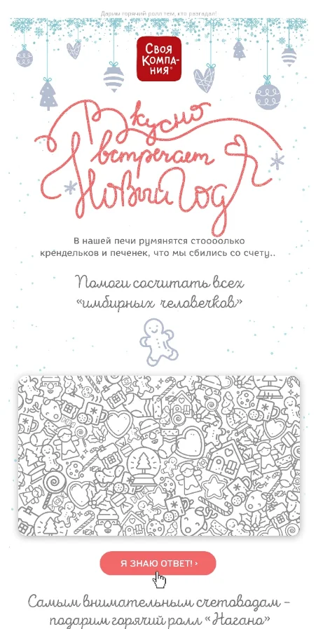 Объём геймификации в рассылках может быть совершенно разным. Можно сделать небольшой игровой блок внутри тематического письма или создать полностью геймифицированное письмо, всё содержание которого строится на игре. Также можно разработать серию писем с разными игровыми заданиями. Наиболее подходящий вариант будет зависеть от поставленной цели.