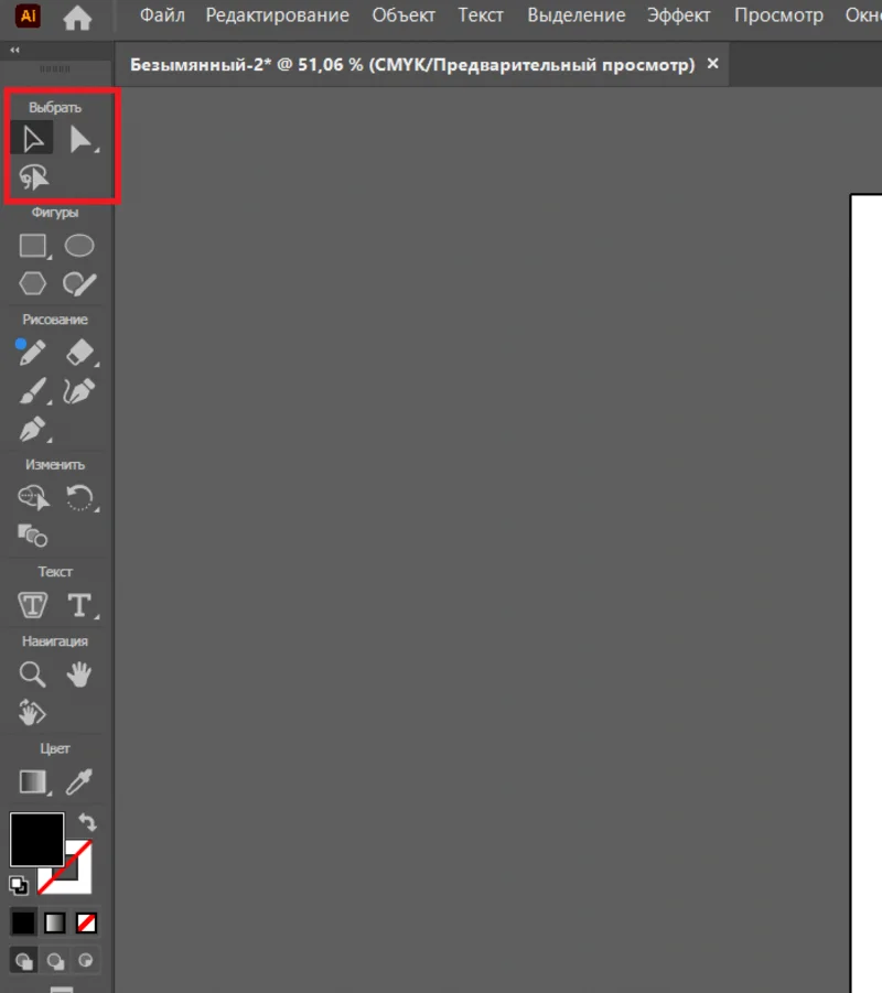 Прямое выделение (Direct Selection). Выделяет отдельные точки (узлы) и сегменты кривых. Используется для детальной правки формы. Горячая клавиша: A.