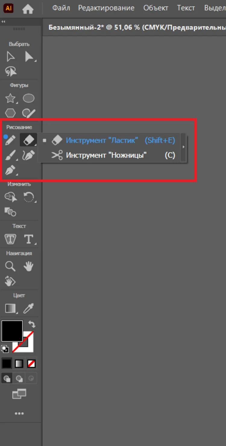 Создание фигур (Shape Builder). Позволяет быстро объединять, вычитать и пересекать формы прямо курсором. Вы выделяете несколько фигур, а затем проводите по нужным областям — Illustrator автоматически превращает их в одну фигуру или удаляет лишнее. Горячие клавиши: Shift + M.