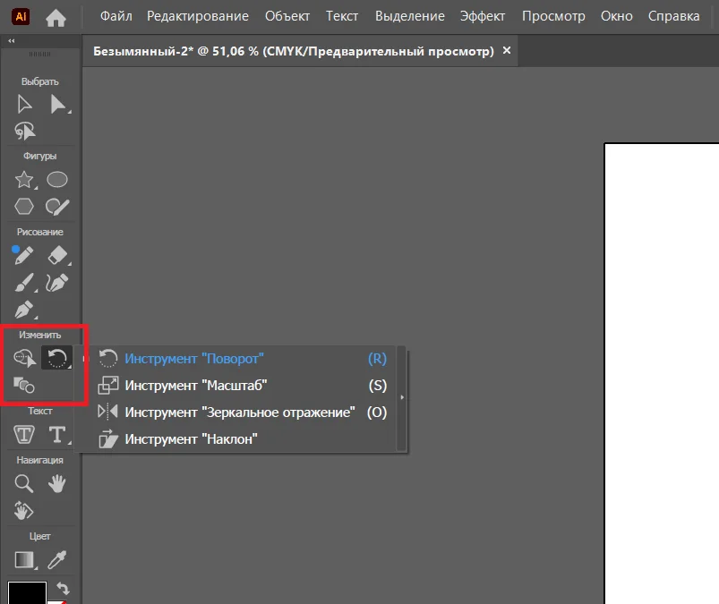 Поворот (Rotate). Поворачивает объект вокруг центра или выбранной контрольной точки. Можно: задать точный угол в параметрах, вращать вручную или поставить новую точку вращения (например, для лепестка цветка или стрелки). Горячая клавиша: R.