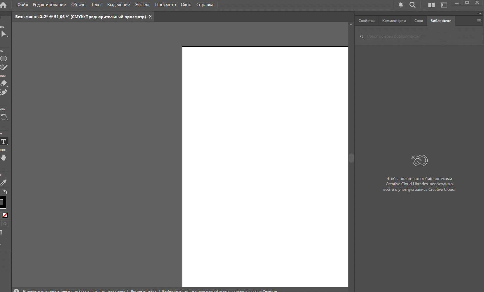 Строка состояния внизу показывает текущий масштаб документа и помогает ориентироваться в рабочем пространстве.