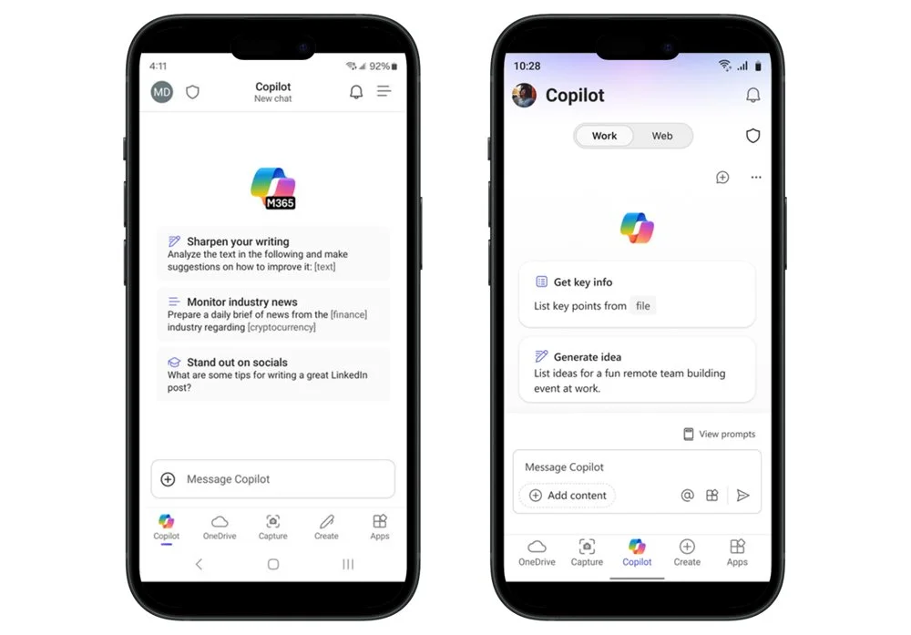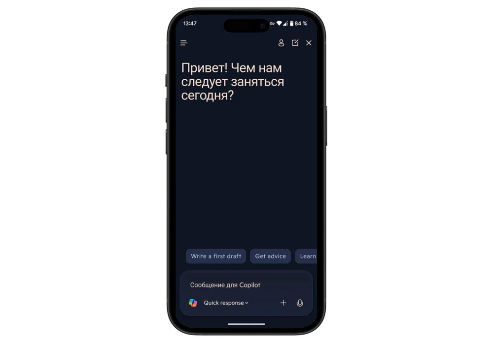 У Copilot есть мобильное приложение для iOS и Android. Функции доступны только для пользователей с подпиской Microsoft 365.