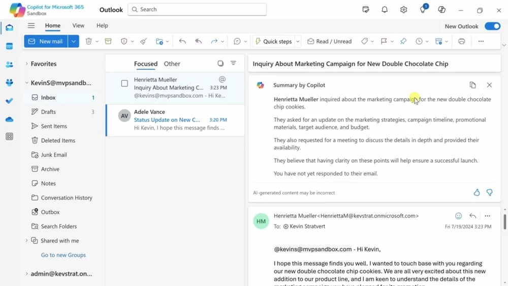 Сводка и генерация ответов. Copilot автоматически суммирует длинные сообщения, определяет основное содержание и задачи. Так вы быстрее поймете, какие действия от вас ждут и что нужно ответить. Чтобы составить ответное письмо, можно использовать функцию Draft with Copilot, тогда чат-бот подготовит хорошо структурированный черновик.