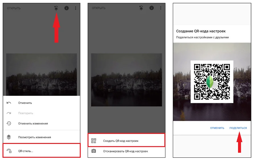 Сохранять собственные пресеты. Snapseed позволяет сохранять и использовать свои наборы настроек. А еще для пресетов можно создавать QR-коды и отправлять их команде или друзьям. Функция поможет сэкономить время на обработке серии фото и выдержать единый визуальный стиль.