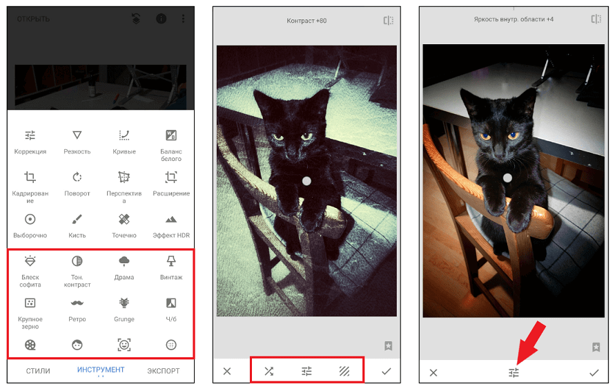 Плюсы фоторедактора Snapseed не заканчиваются на оболочке и бесплатном доступе. В этом приложении можно: