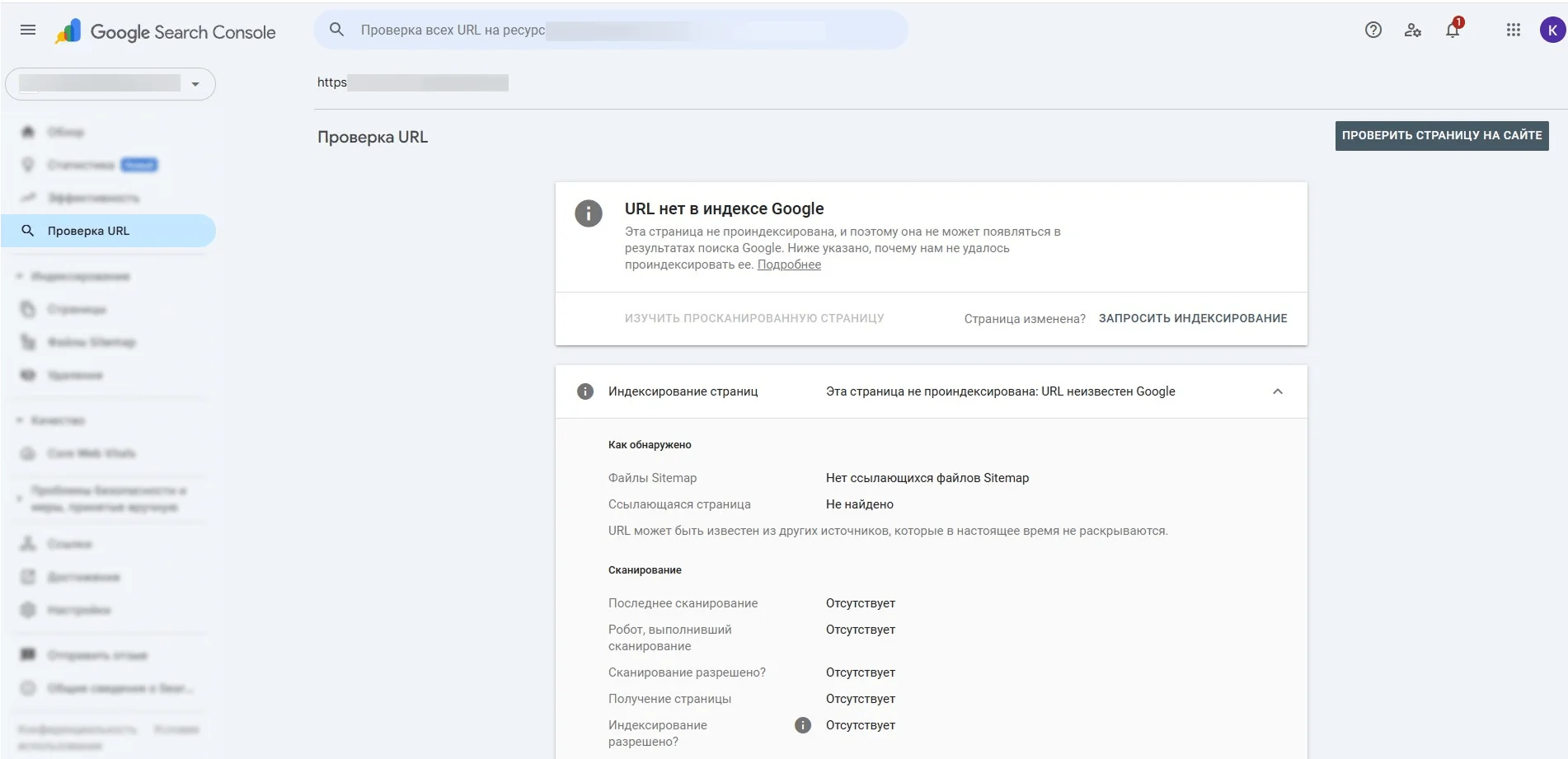 Кроме того, здесь можно запросить отчёт о сканировании. Он предназначен для SEO-специалистов, которые уже научились работать с GSC и проверяли ресурс несколько раз. В Google его рекомендуют читать только тем, у кого ресурс состоит из 1000 страниц и более.
