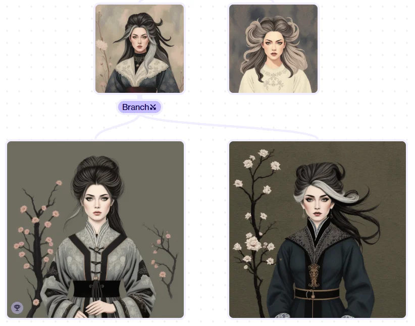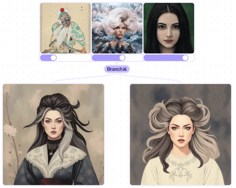 Добавим картинку, которую мы сгенерировали ранее. Настроим степень влияния каждой из них: для этого перетаскиваем ползунки под изображениями. После этого нажимаем Branch.