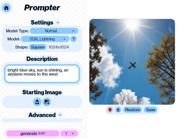 Prompter. Стандартная генерация картинки по тексту. Можно загружать референсные изображения.