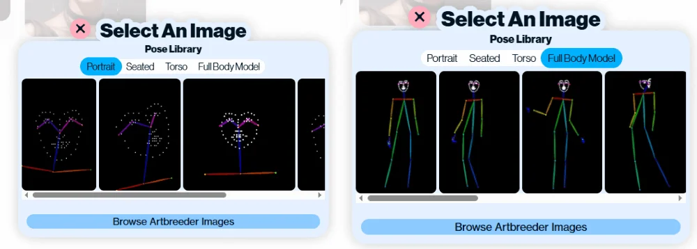 В первом окне можно выбирать позы для портретного изображения, для положения сидя, для тела по пояс и для изображения во весь рост.