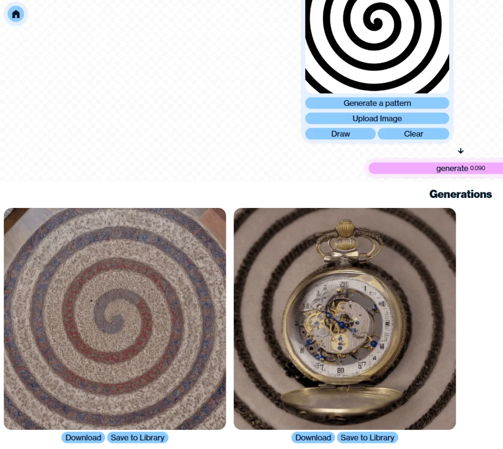 Для примера возьмем спираль из библиотеки платформы. Протестируем два промпта: “a pocket watch” и “a Persian carpet” — «карманные часы» и «персидский ковер».