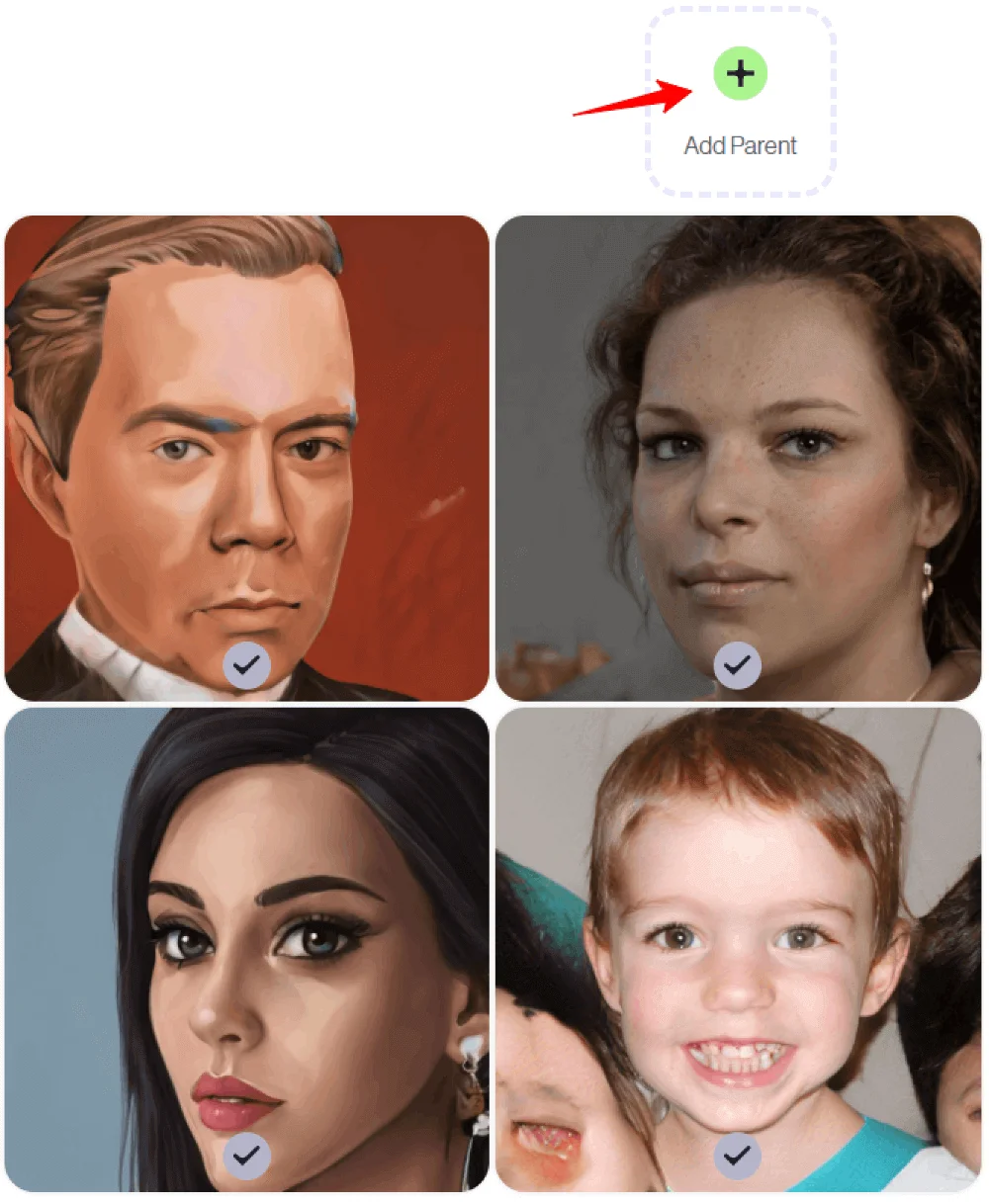 «Родитель» — это изображение-исходник из готовой библиотеки. Нейросеть создает картинки, напоминающие родительскую. Схожими могут быть черты лица, цветовая гамма, стиль.