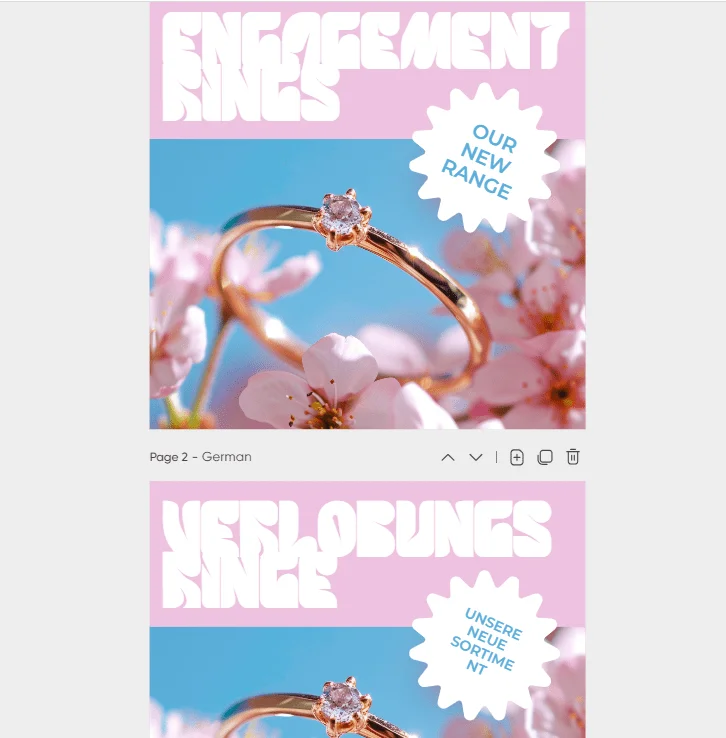 Ниже — пример перевода текста с англоязычного баннера на немецкий.