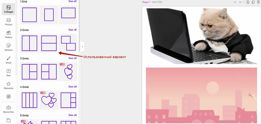 Коллажи. Можно загрузить несколько картинок и сделать из них коллаж по готовым макетам.