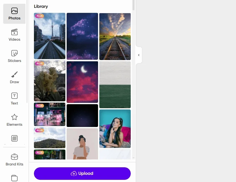 Фото. На платформе есть библиотека фотографий, которые можно использовать в дизайне.