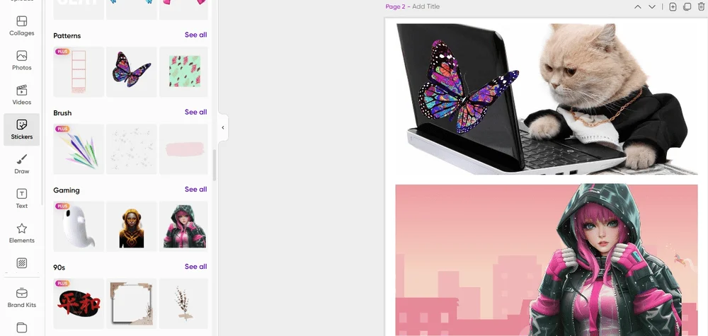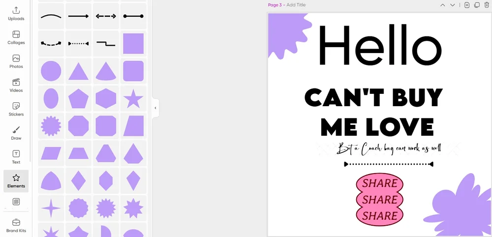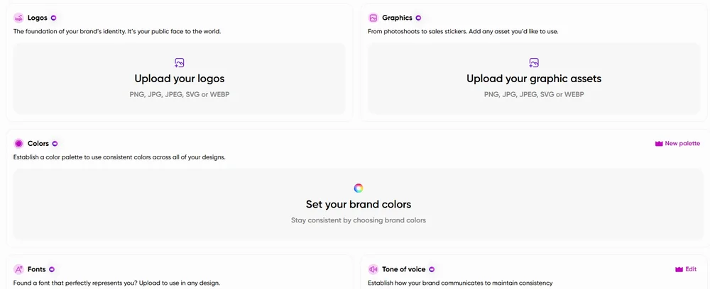 Брендирование. В Picsart можно создавать дизайны в стилистике бренда: с логотипами, фирменными цветами и даже нужным ToV. Найти пункт Brand Kits можно также на панели слева. Этот функционал доступен платно.