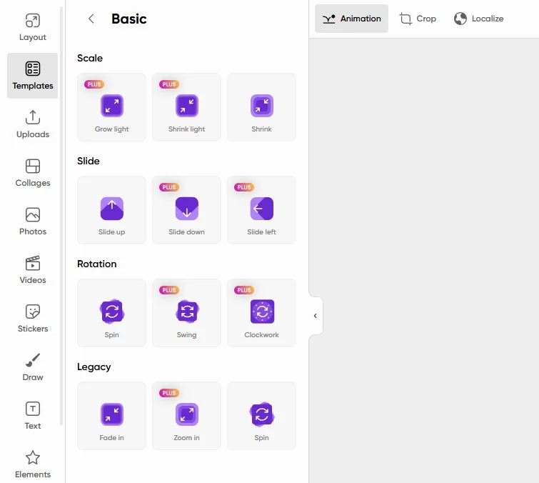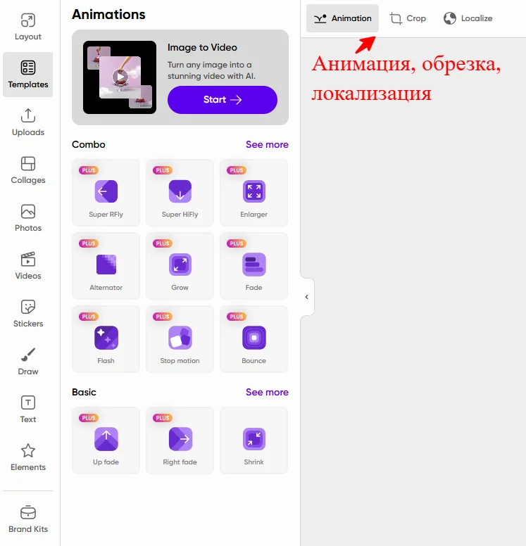 В бесплатной версии доступны только несколько базовых вариантов анимации: