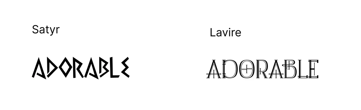 К ним относят все декоративные варианты, в том числе и рукописные. Иногда даже включают дополнительные элементы — вроде теней, пятен или клякс. Как правило, такие виды букв используют для выделения заголовков или небольших фраз — читать абзацы текста в акцидентном шрифте сложно.