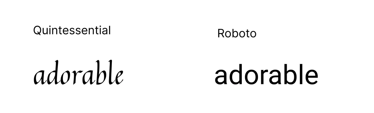 В шрифте Quintessential контрастность высокая. Roboto — шрифт с низкой контрастностью. В нём есть минимальная разница толщин, но если не вглядываться, не заметишь.