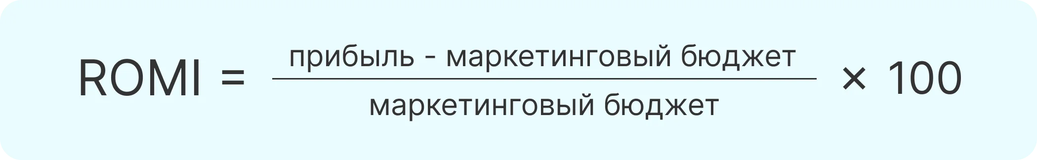 Как и ROI, ROMI должен быть не менее 100%. Иначе компания будет больше тратить, чем зарабатывать.