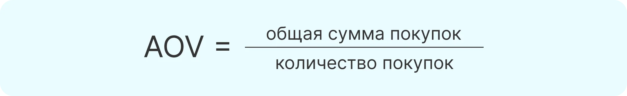 Чем выше средняя сумма покупки, тем лучше. Также важно, чтобы AOV был больше, чем CAC (стоимость привлечения клиента), исключение — если у бренда высокий LTV (пожизненная ценность клиента).