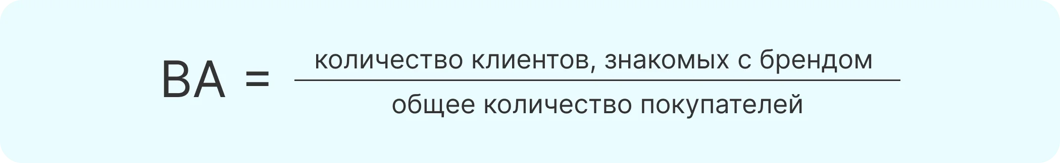 Для расчета BA следует провести опрос среди потребителей и посчитать, сколько людей знает бренд.