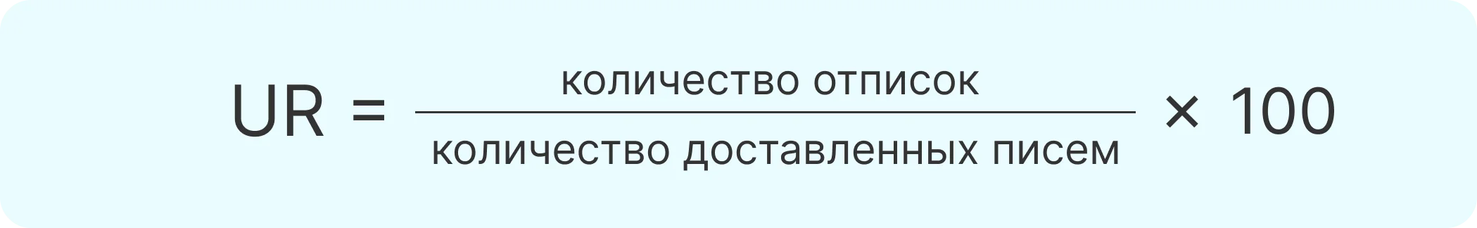Отражает процент пользователей, которые отказались от подписки после получения письма. Метрика помогает контролировать интерес аудитории к рассылке. Если UR растет, значит, нужно что-то менять.