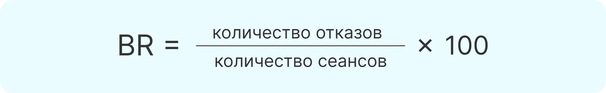 Отражает процент пользователей, которые провели на сайте мало времени и не совершили никаких действий: не перешли на другие страницы, не оставили заявку и т. д. Например, Яндекс считает отказом, если посетитель провел на сайте менее 15 секунд. А Google — если человек не открыл дополнительные страницы. Метрика рассчитывается в процентах.