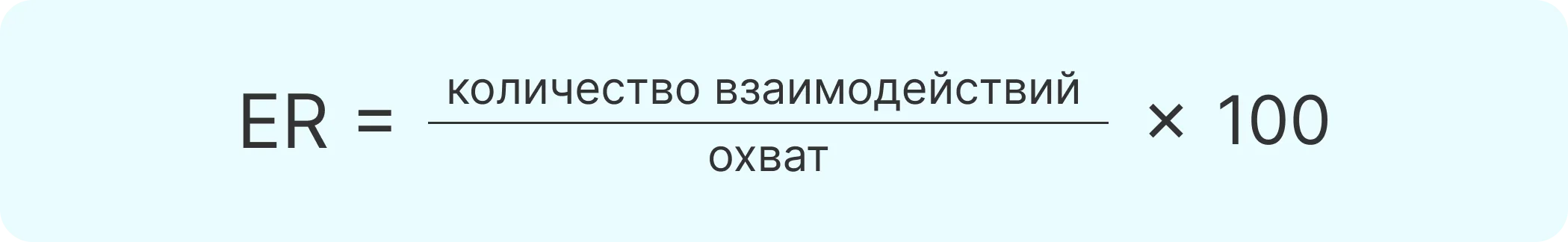 Показывает, насколько активно аудитория взаимодействует с контентом. Чем выше ER, тем лучше, это означает, что материалы на сайте привлекательные, релевантные и вызывают отклик. Рассчитывать коэффициент можно только, если у пользователей есть возможность лайкать, комментировать, репостить информацию на сайте. Результаты измеряются в процентах.