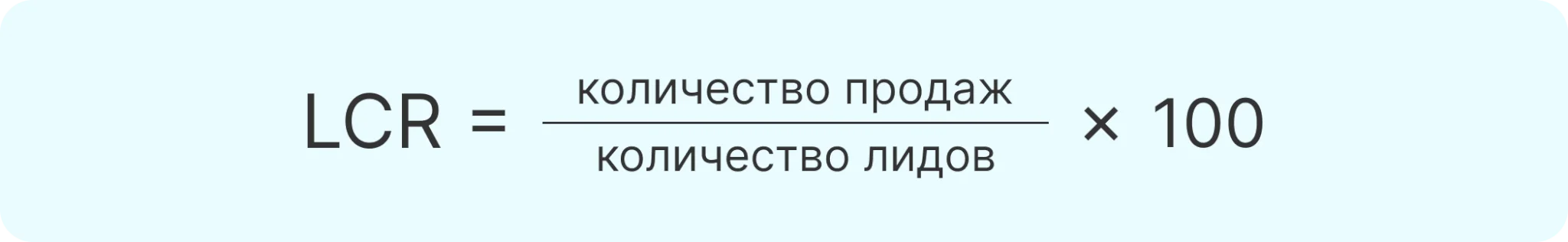 Чем выше показатель, тем эффективнее в компании работают с лидами. Оптимальные значения разнятся в зависимости от конкретной отрасли бизнеса.