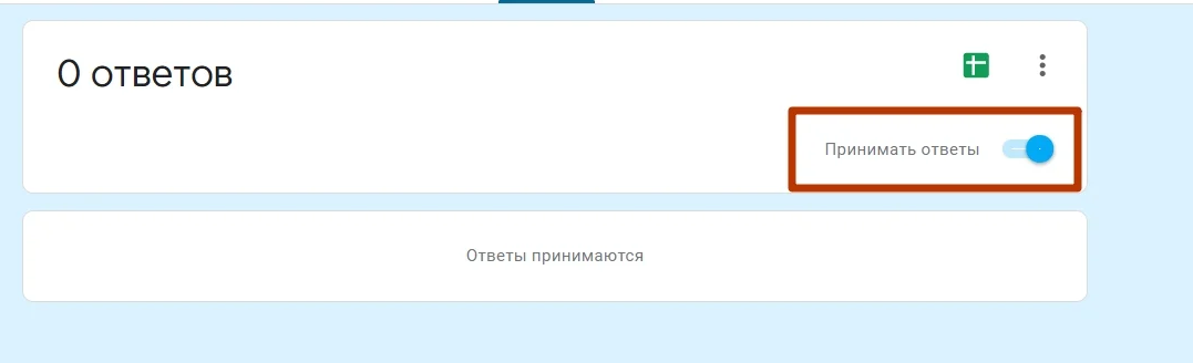 Чтобы прекратить принимать ответы достаточно передвинуть ползунок «Принимать ответы» в противоположную сторону.