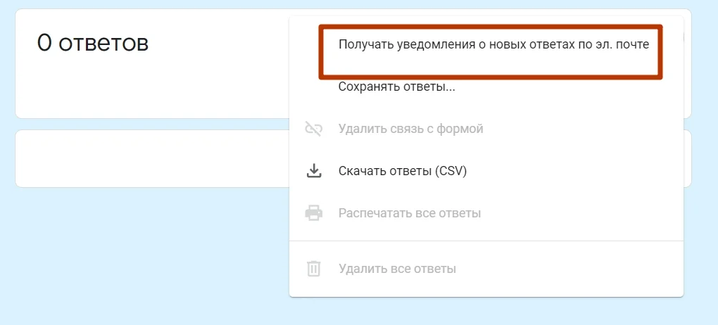 Все ответы на форму попадают на вкладку «Ответы».