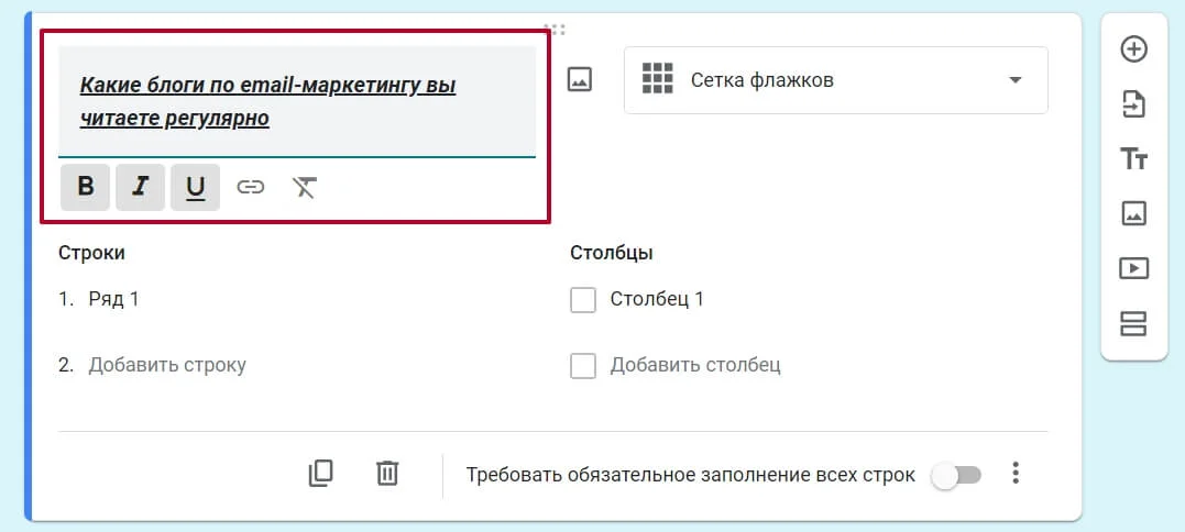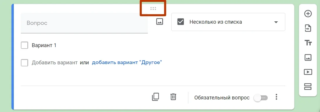 Теперь выберите нужный тип вопроса из доступных вариантов справа от названия вопроса.