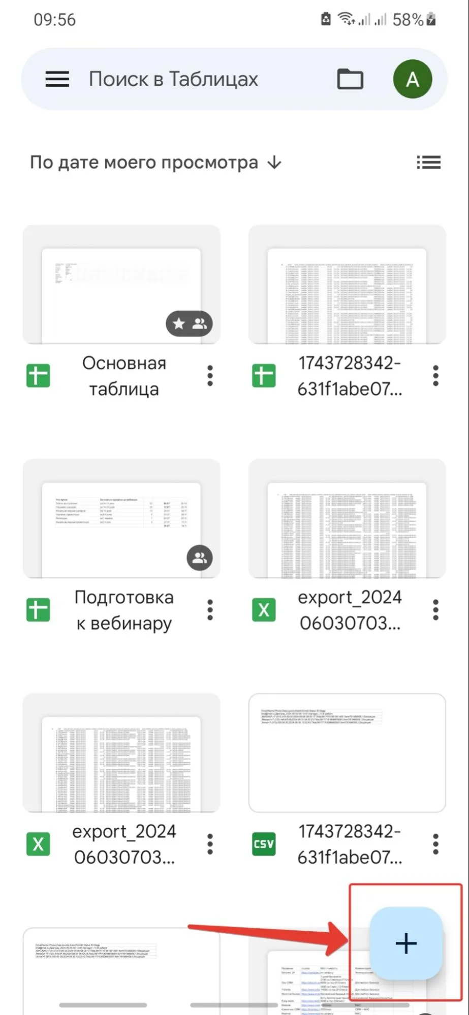 Если работаете с Google Sheets в приложении на мобильном устройстве, то в нижней части экрана нажмите на плюс и откроется новая таблица.
