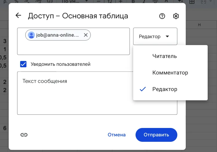 В Google Таблицах есть три варианта доступа: