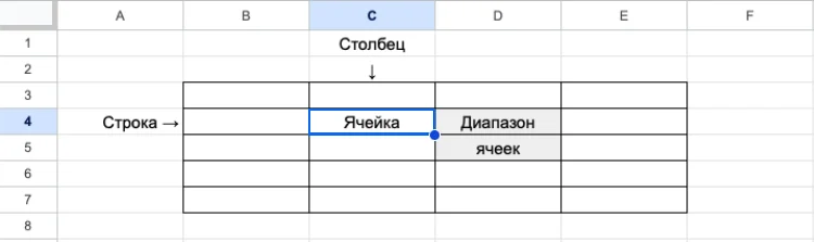 В Google Таблицах есть три базовых элемента:
