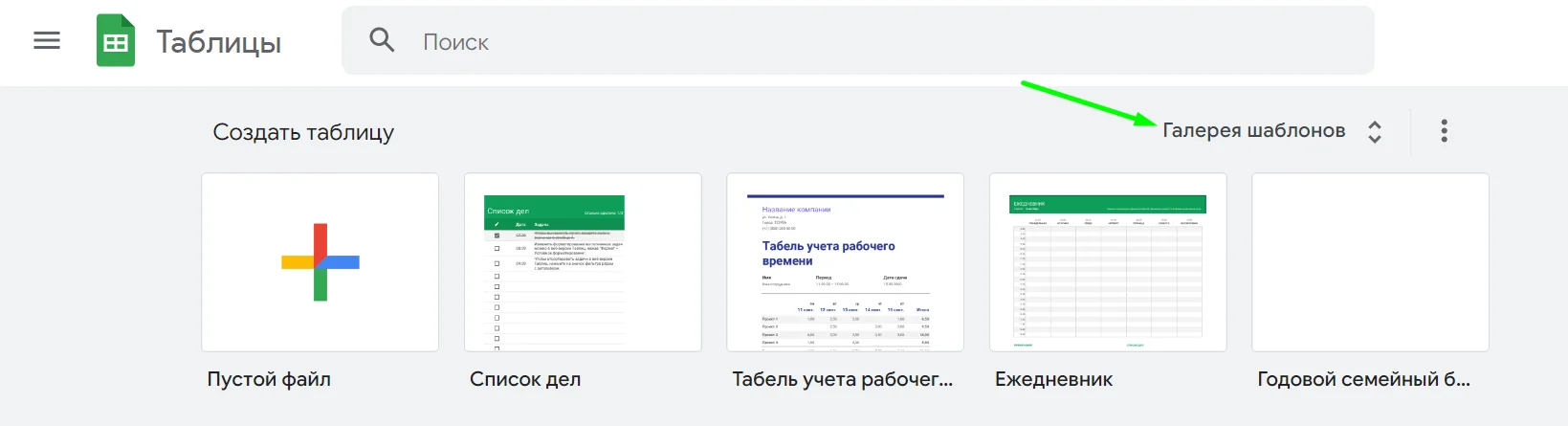 Чтобы использовать готовые таблицы Google Sheets, войдите в свой Google аккаунт и перейдите в галерею шаблонов Google Sheets. Также открыть галерею можно с главной страницы сервиса.