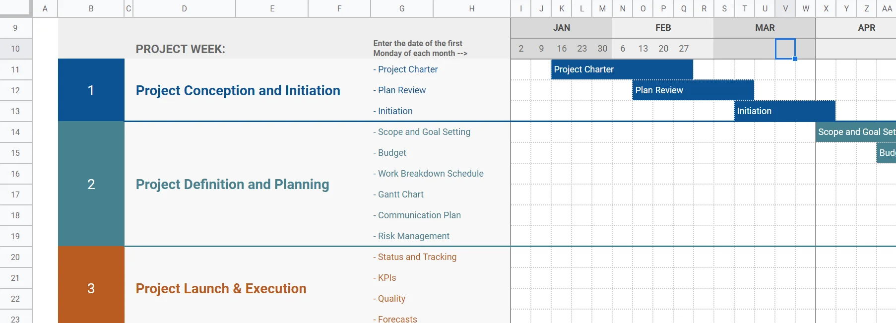 Таблица позволяет хронологически отобразить основные этапы проекта. Можно поделить большой объём работы на мелкие части, чтобы упростить планирование и сроки выполнения конкретных задач.