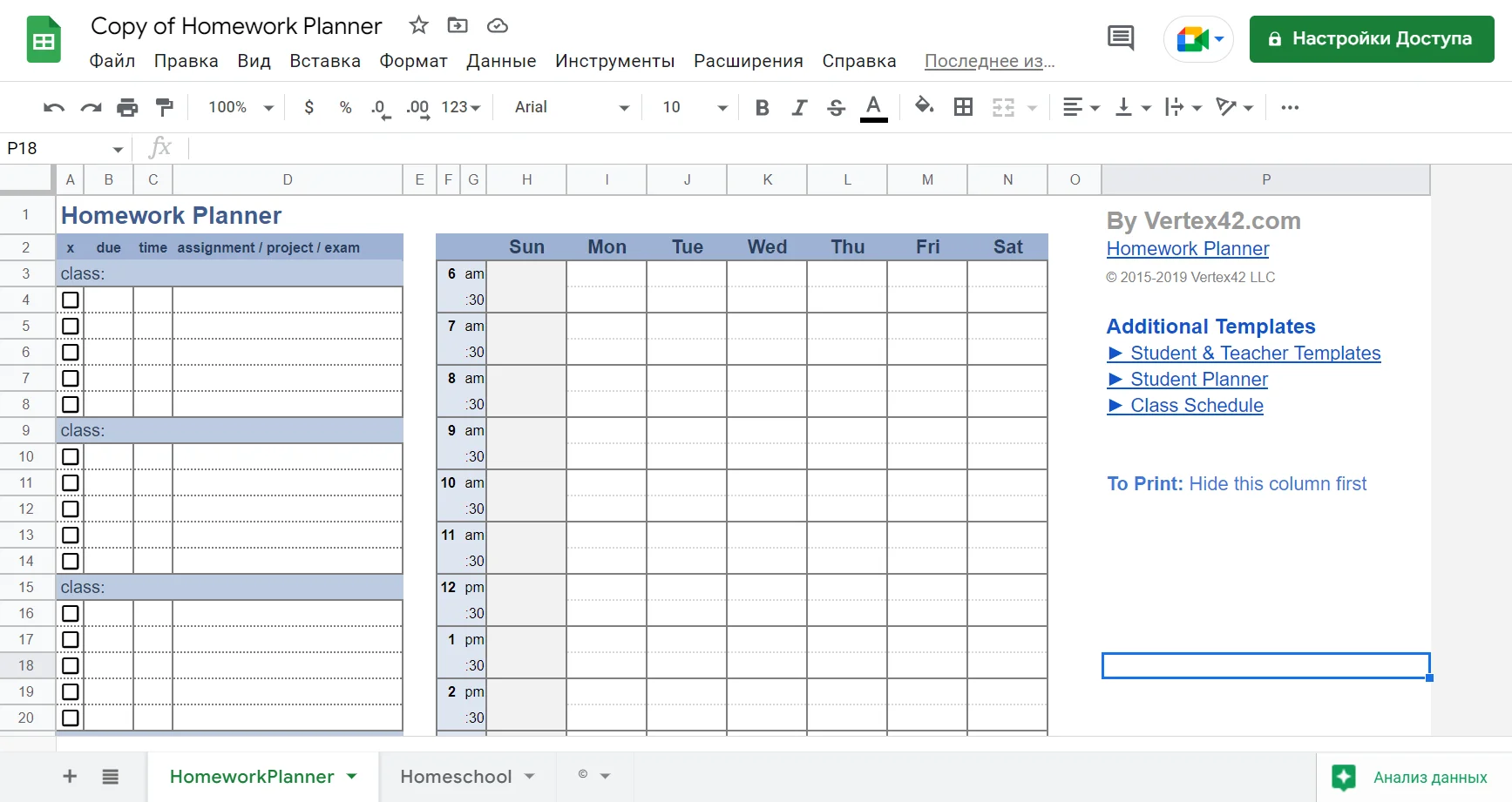 Чтобы использовать готовый шаблон, кликните по ссылке. Потом выберите «Файл → Создать копию», укажите название и папку для сохранения. Нажмите «Скопировать» — копия документа откроется в новом окне. Дальше вы можете редактировать таблицу по своему усмотрению.