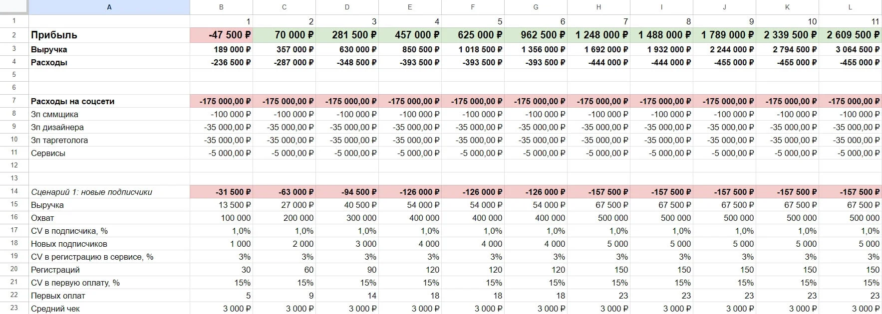 Этот шаблон поможет оценить затраты на соцсети, подсчитать CV, средний чек, CPM, LTV и другие полезные показатели.