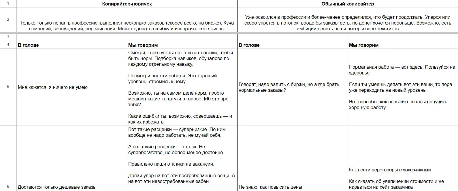 Шаблон, чтобы выписать все боли, проблемы, возражения целевой аудитории — и придумать на основе этого темы для публикаций.